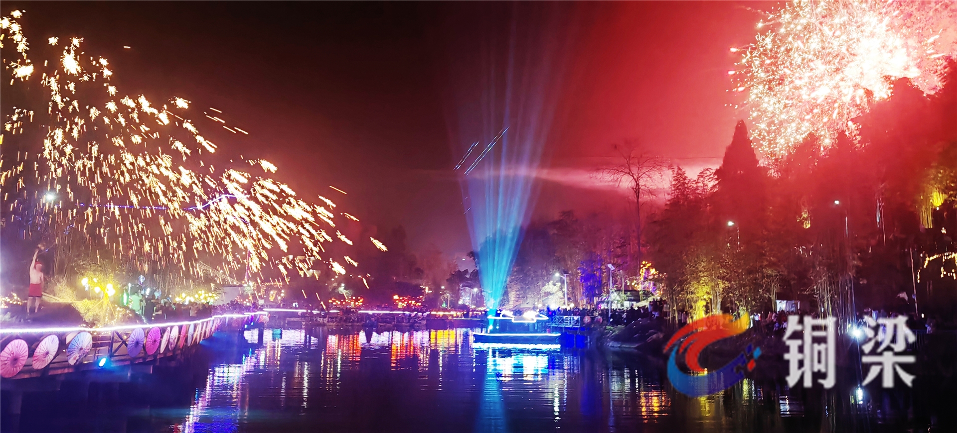 2月16日晚,在銅梁龍景區(qū),伴隨著歡快喜慶的樂(lè)曲,幾位赤膊漢子將上千度的鐵水擊打向天空,“鐵水鋼花”漫天飛舞,贏得現(xiàn)場(chǎng)游客的陣陣掌聲