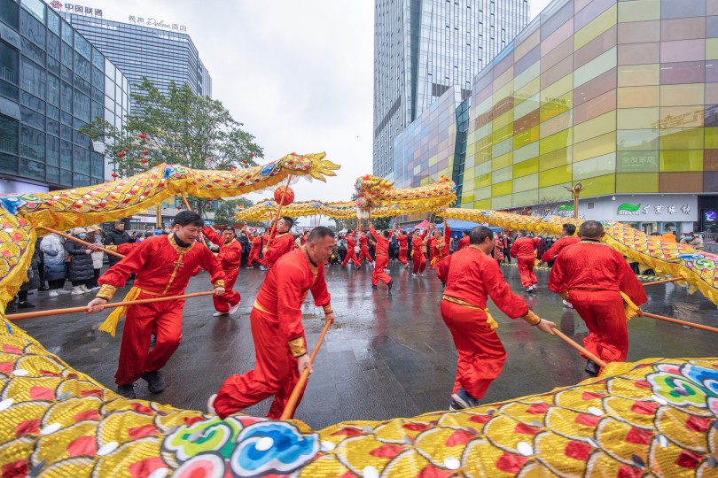 火龍飛舞迎新年 銅梁龍閃耀“云端之眼”