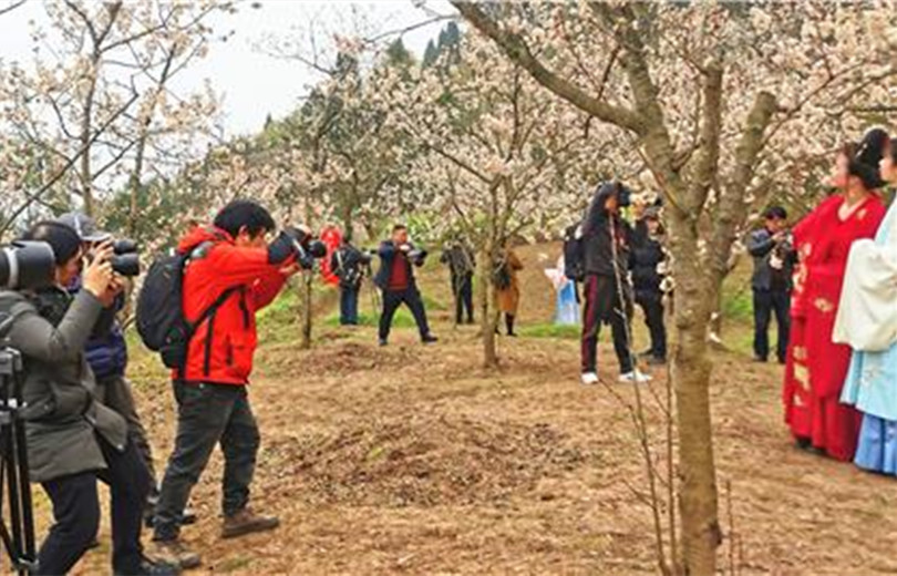 2月18日上午,在重慶市銅梁區雙山鎮建新村,來了一群特殊的游客。他們是銅梁區攝影家協會的會員,專程到建新村采風,拍攝山村櫻桃花美景,