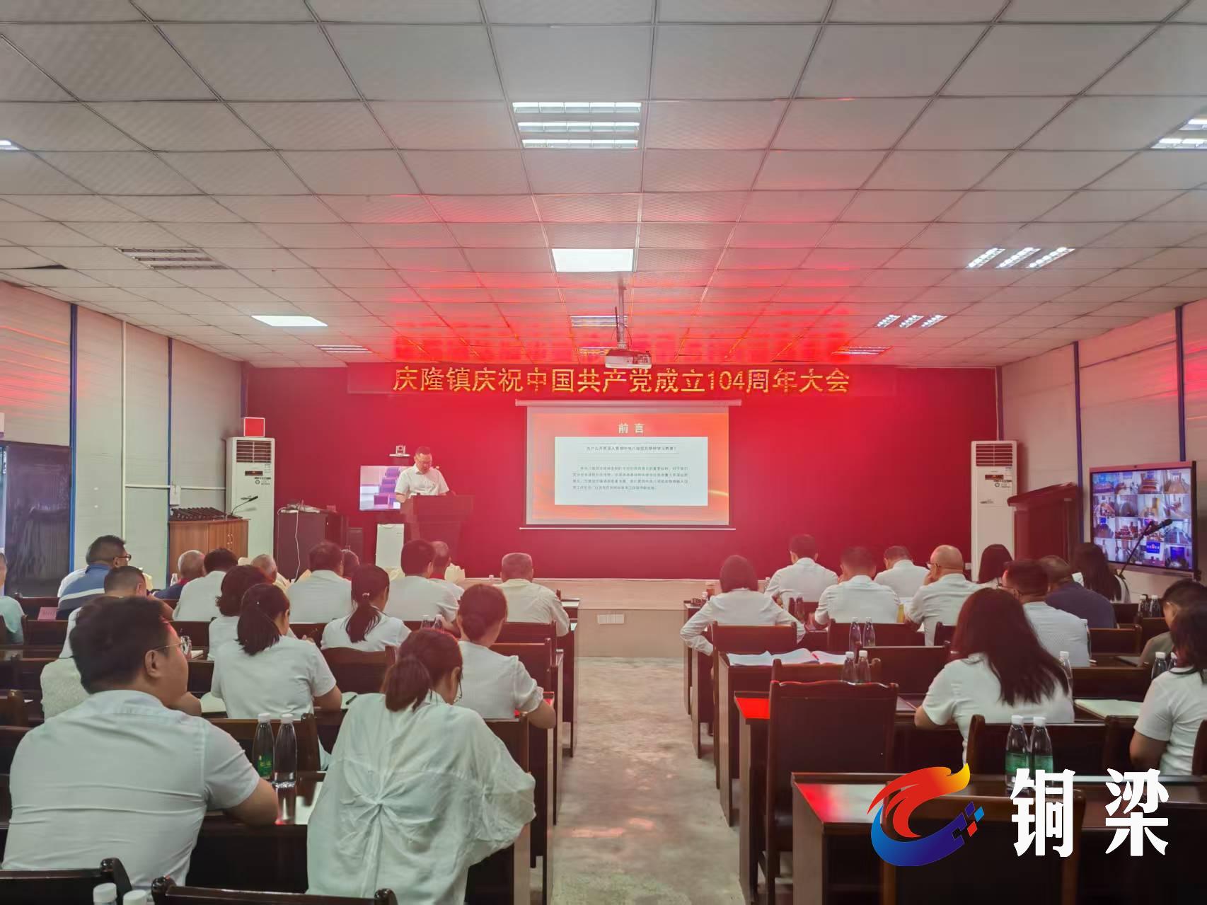 6月30日,銅梁區慶隆鎮舉行慶祝中國共產黨成立104周年大會。大會在莊嚴的國歌聲中拉開序幕。大會組織全體黨員觀看警示教育片,通過真實案例