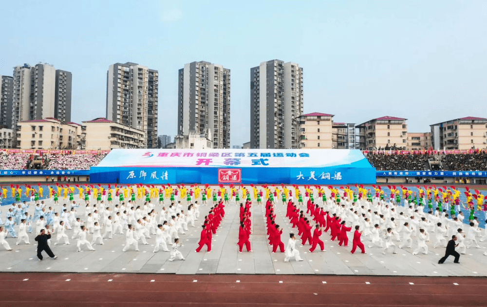 11月7日下午,銅梁區在區運動場舉行第五屆運動會開幕式,開幕式在“我和我的祖國”萬人拉歌中拉開序幕,銅梁區委副書記朱華倫致開幕詞,區