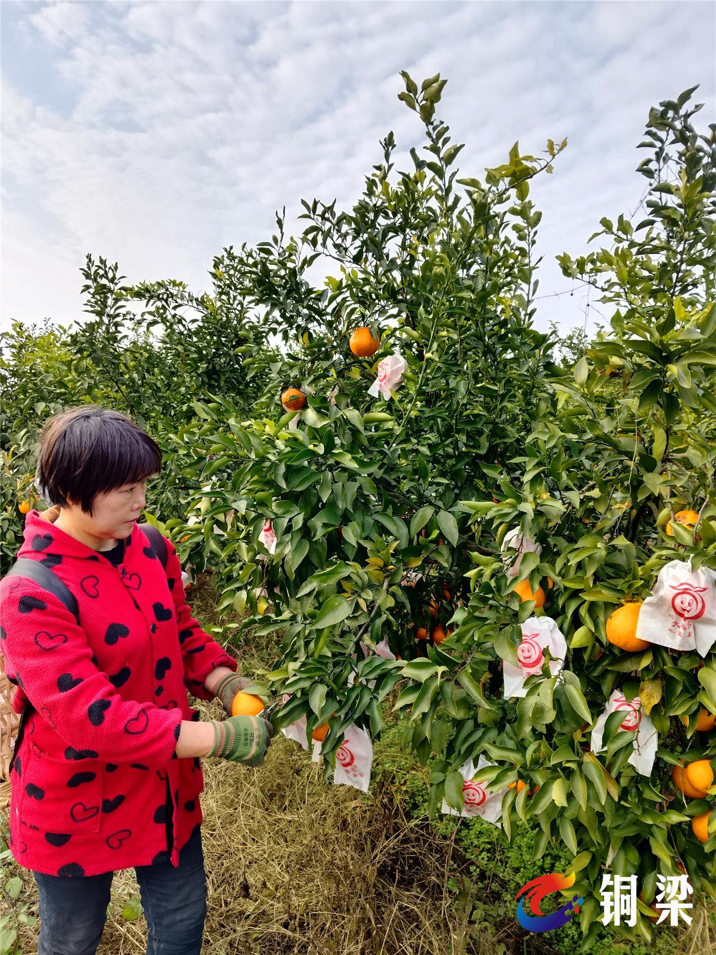 1月8日下午,在銅梁區(qū)高樓鎮(zhèn)涪江村14組柑橘園里,大雅柑掛滿枝頭,空氣中彌漫著清甜的香氣。工人輕輕剪掉果蒂后,將果子放入框里。“今年果