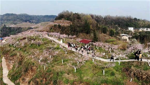 銅梁區土橋鎮六贏山暖陽濃郁,嫩芽爬上柳枝條、桃花梳妝碧水上,放眼望去處處皆是生機盎然的春日生機圖。▲六贏山游人如織。特約通訊員 李