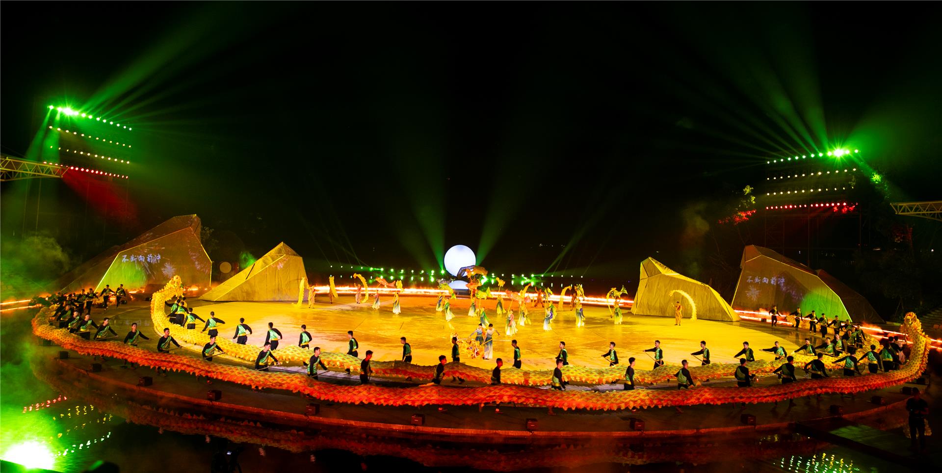 每到周末,銅梁玄天湖龍舞廣場,大型非遺山水實景劇《追夢·銅梁龍》都會在這里準(zhǔn)時上演,吸引眾多游客一探銅梁龍舞的獨特魅力。《追夢·銅